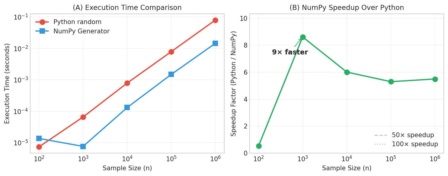 But theoretical understanding alone doesn’t generate data. When we need 10,000 bootstrap samples, a million Monte Carlo iterations, or posterior draws from an MCMC chain, we must bridge the gap from mathematical abstraction to computational reality. This chapter provides that bridge: a comprehensive guide to Python’s ecosystem for random number generation and probability computation.