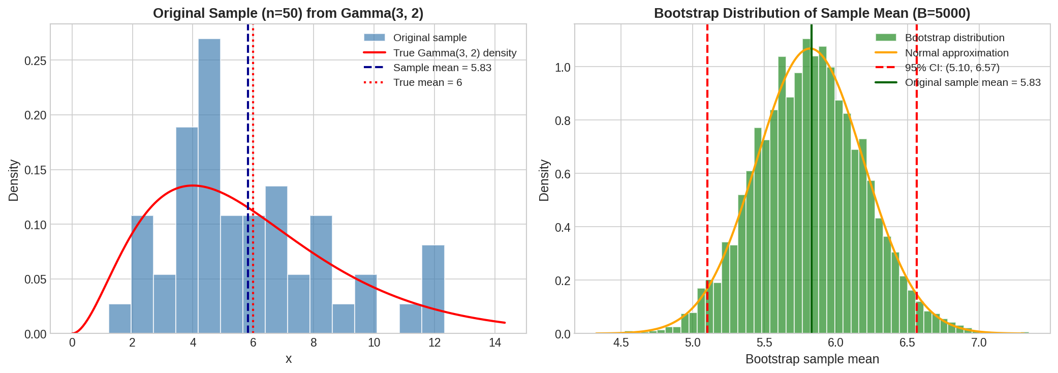 Problem: Estimate \(P(X > 5)\) where \(X \sim \text{Gamma}(3, 2)\) (shape 3, scale 2).