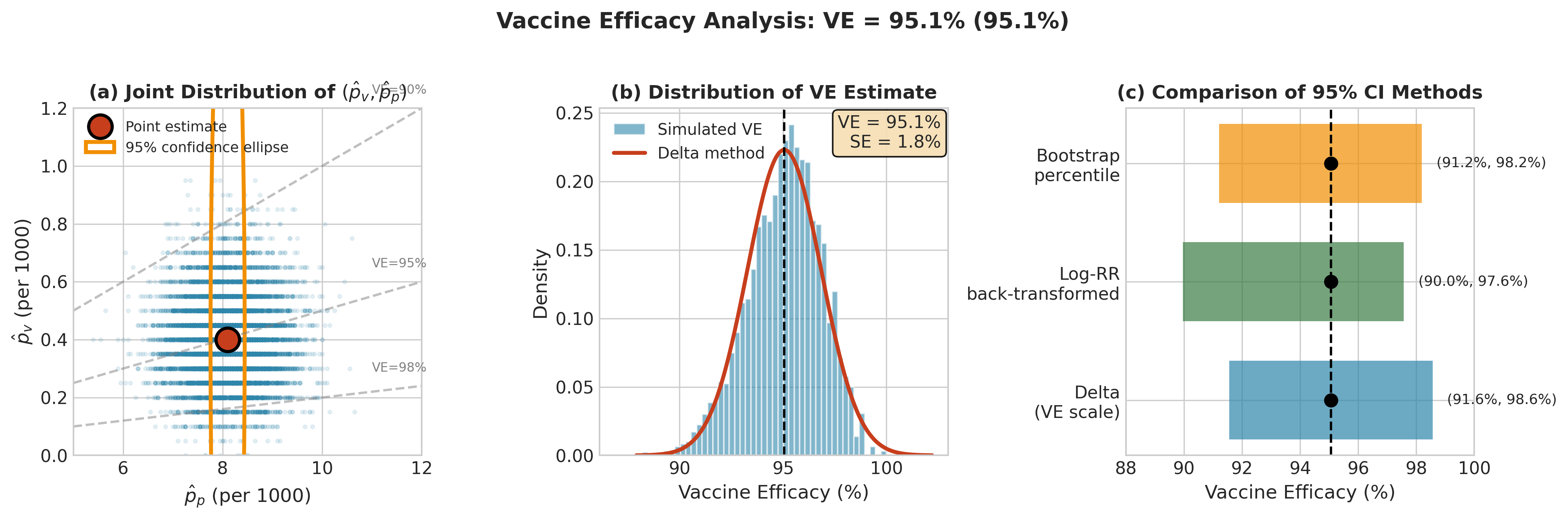 In Section 3.2, we developed maximum likelihood estimation—a systematic method for obtaining point estimates \(\hat{\theta}\) from data. But a point estimate alone tells only half the story. Reporting that a vaccine has 95% efficacy, or that a regression coefficient is 2.3, means little without understanding the uncertainty in these estimates. How much would \(\hat{\theta}\) vary if we repeated the study? Could the true parameter plausibly be zero? These questions require understanding the sampling variability of estimators.