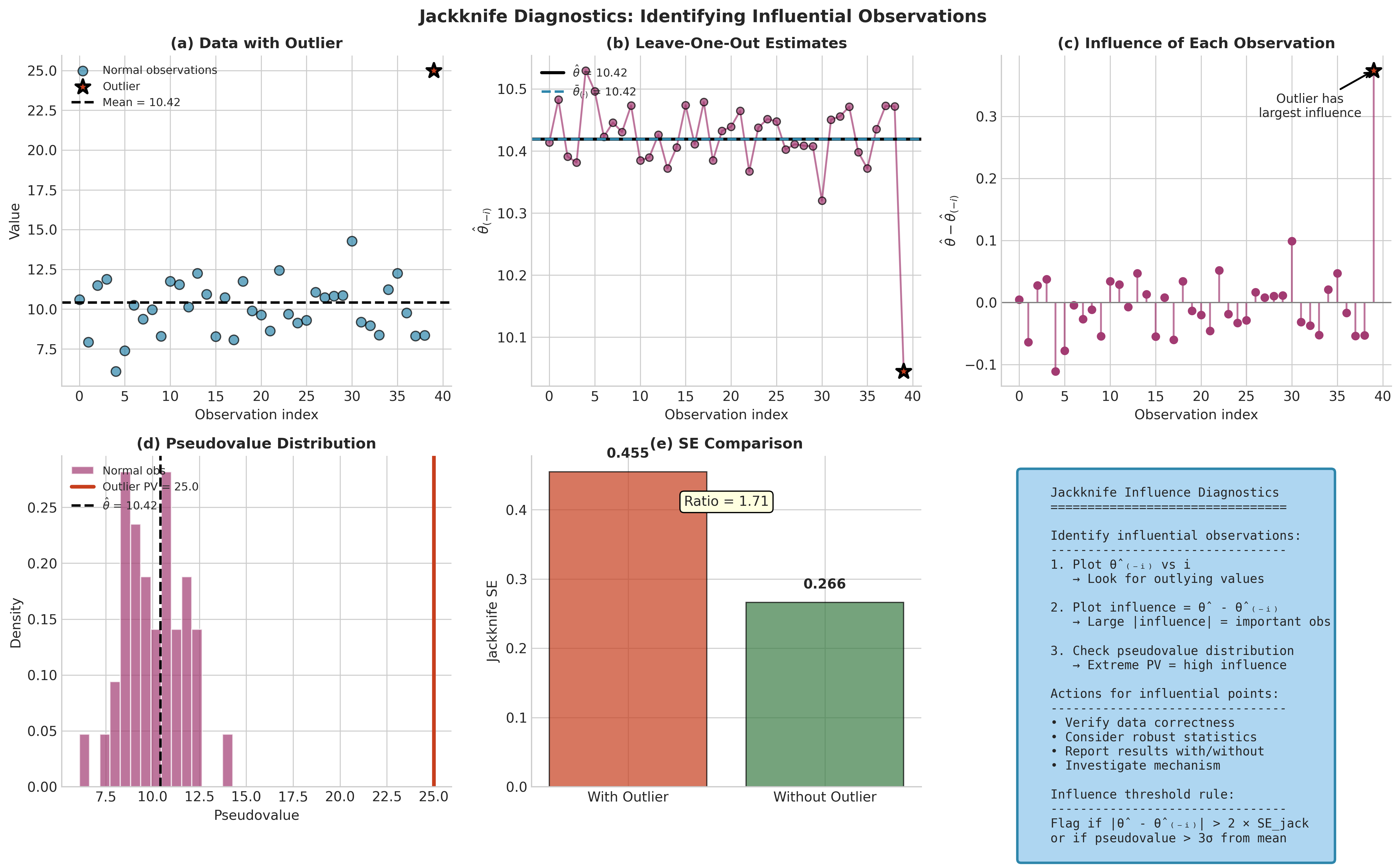 Hampel, F. R., Ronchetti, E. M., Rousseeuw, P. J., and Stahel, W. A. (1986). Robust Statistics: The Approach Based on Influence Functions. Wiley Series in Probability and Mathematical Statistics. Wiley. Theoretical foundation connecting jackknife to influence functions and robust estimation.