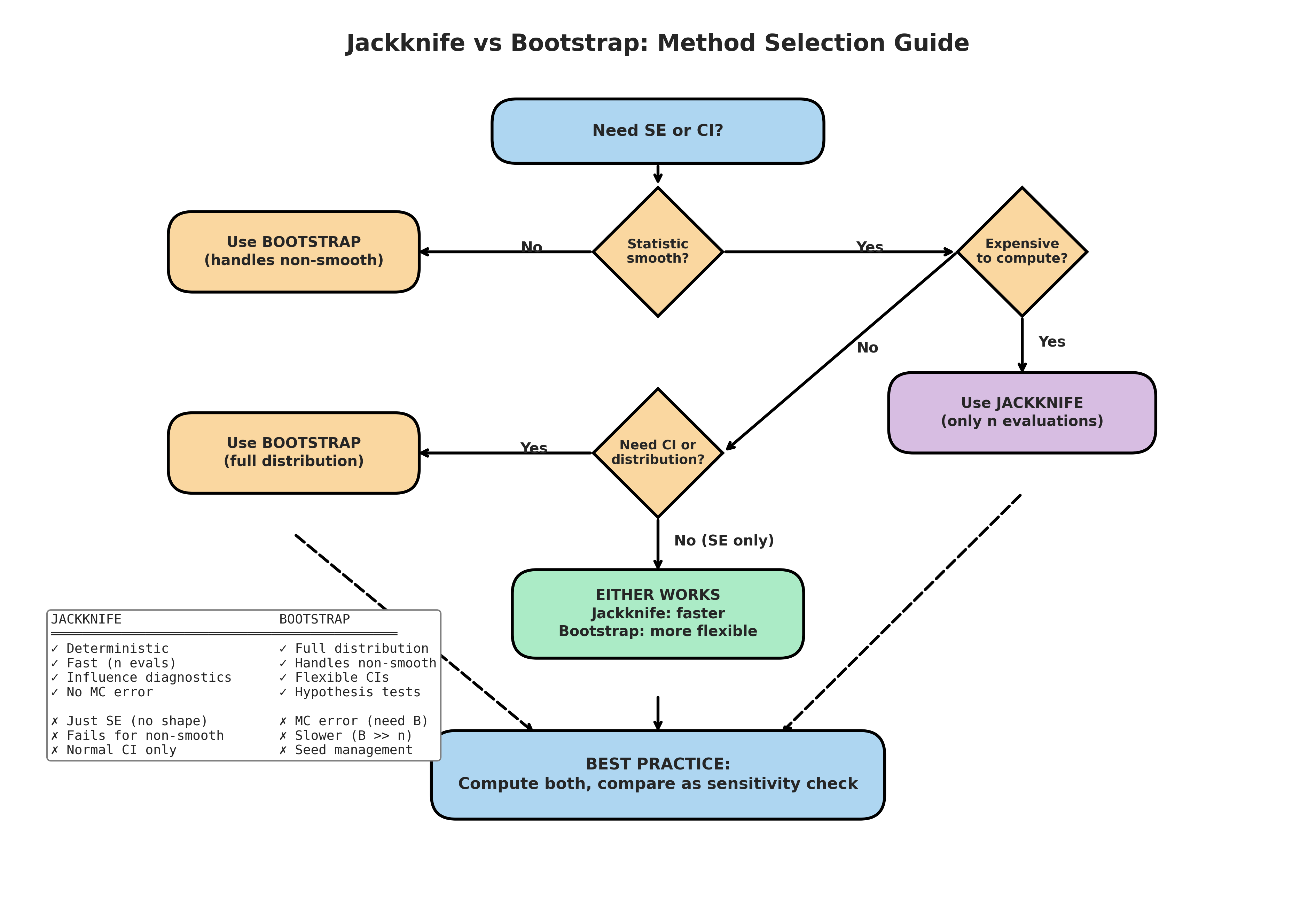 Jackknife provides unique diagnostic value (influence analysis) beyond what bootstrap alone offers.