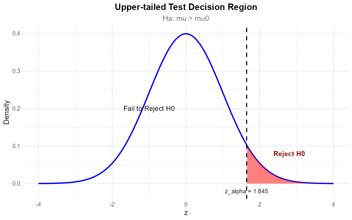 Fig. 10.12 Decision rule for upper-tailed hypothesis test