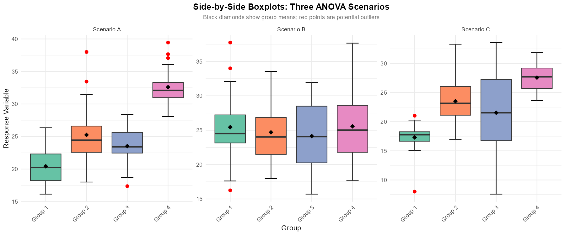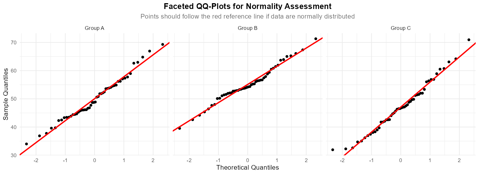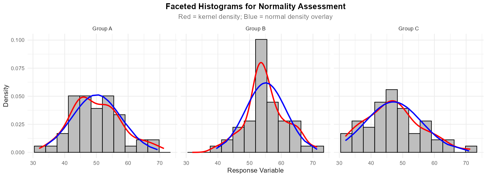 Like all statistical procedures, ANOVA relies on certain assumptions for validity. These assumptions extend the familiar requirements from two-sample procedures to the multi-group setting.