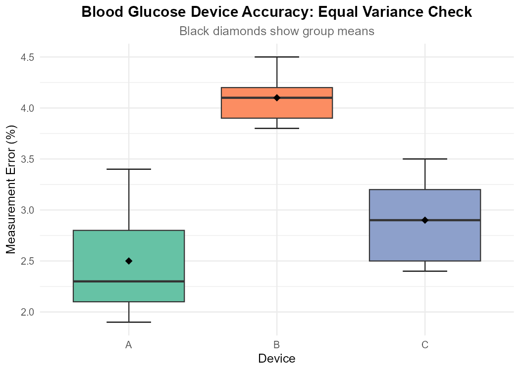 The ANOVA model allows us to view each data point as the outcome of two components, each contributing distinctly. If all population means are truly equal, the only source of randomness among observations would be the \(\varepsilon_{ij}\) terms, whose variance is \(\sigma^2\). If the observed variance in the data is significantly larger than \(\sigma^2\), therefore, we must consider the possibility that differences in group means also contribute.