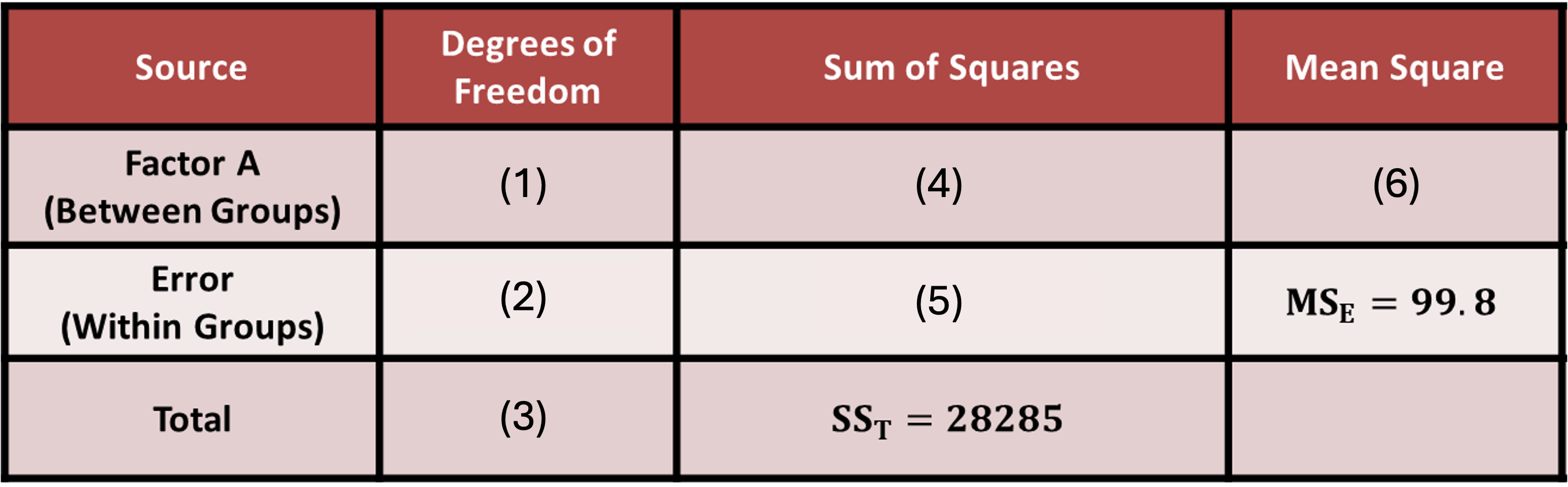 Therefore, an MSA significantly larger than an estimate of \(\sigma^2\) indicates the existence of additional variance due to distinct group means, whereas an MSA comparable to an estimated \(\sigma^2\) indicates an absence of strong evidence against the null hypothesis.