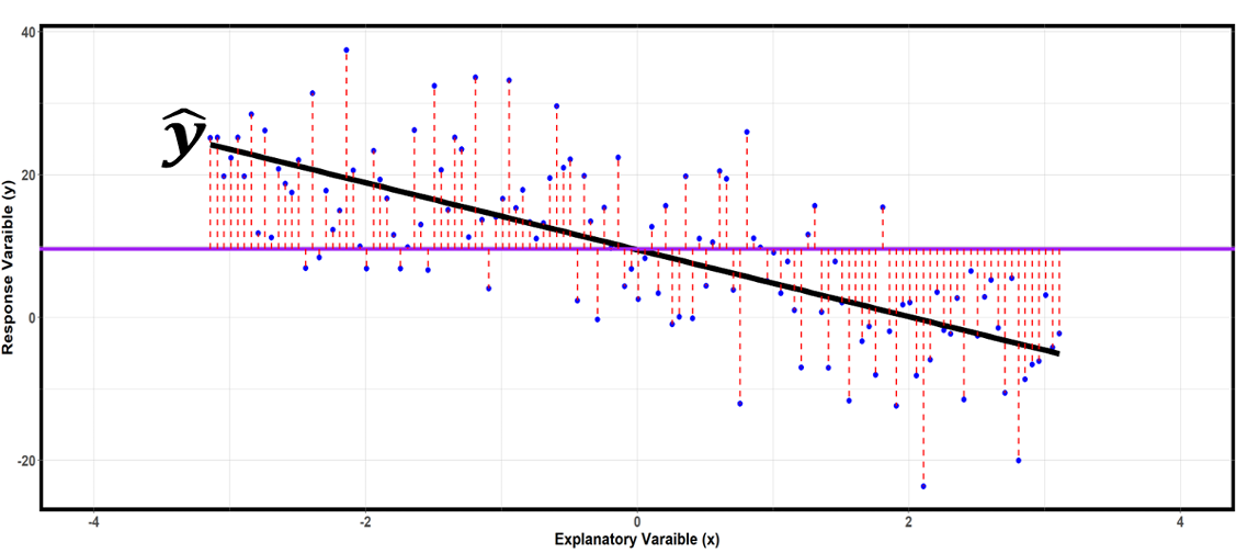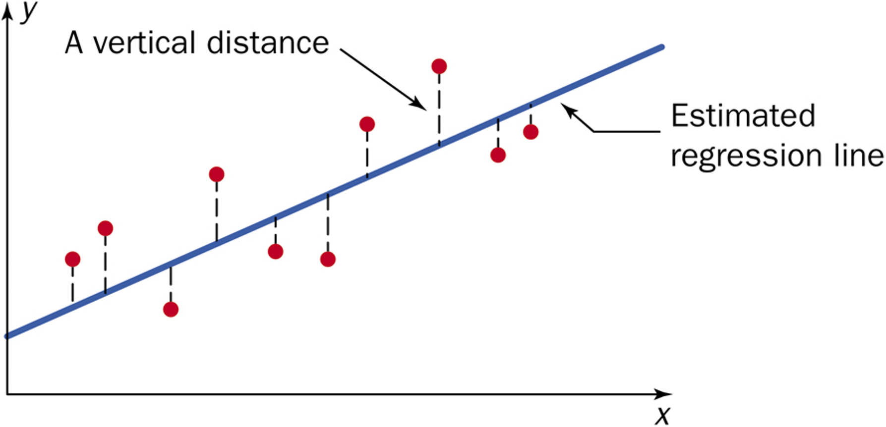 Fig. 13.9 Distances between observed reponses and the fitted line
