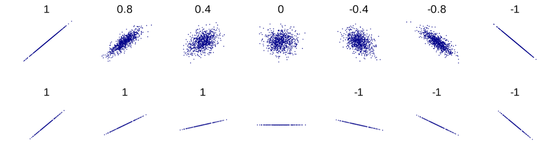Fig. 13.15 Scatter plots with different sample correlation values