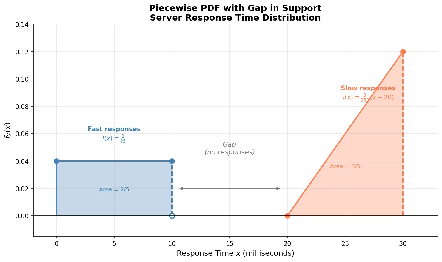 Piecewise-defined PDFs taking different functional forms over different regions of the support (right on Fig. 6.3)