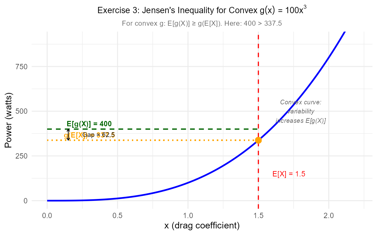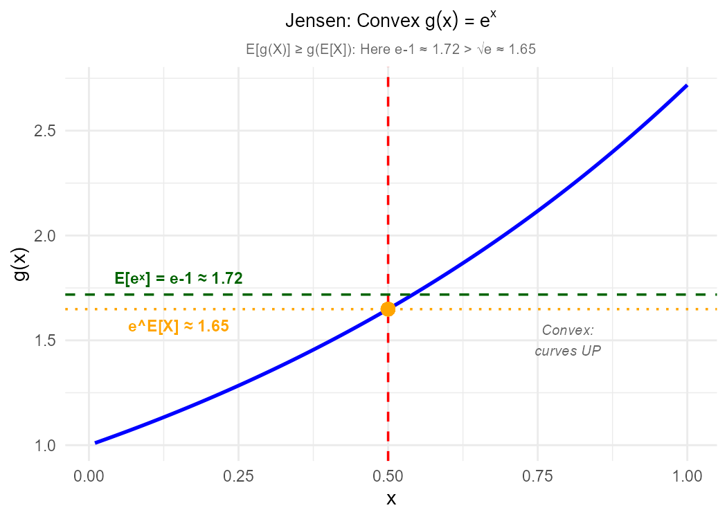 Explanation: The exponential function \(g(x) = e^x\) is convex (curves upward). For convex functions, we have: