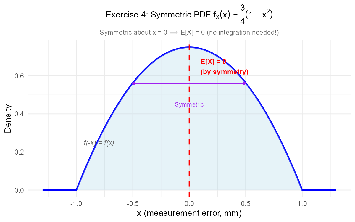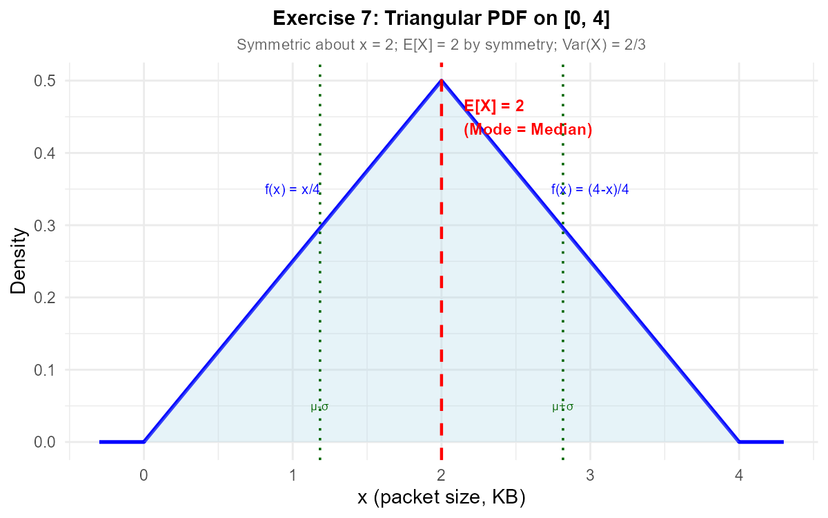 Fig. 6.11 The triangular PDF is symmetric about \(x = 2\), so \(E[X] = 2\) by symmetry.