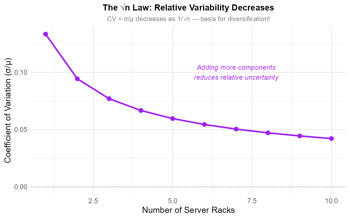 True — For independent random variables, variances add: \(\text{Var}(X + Y) = \text{Var}(X) + \text{Var}(Y)\).