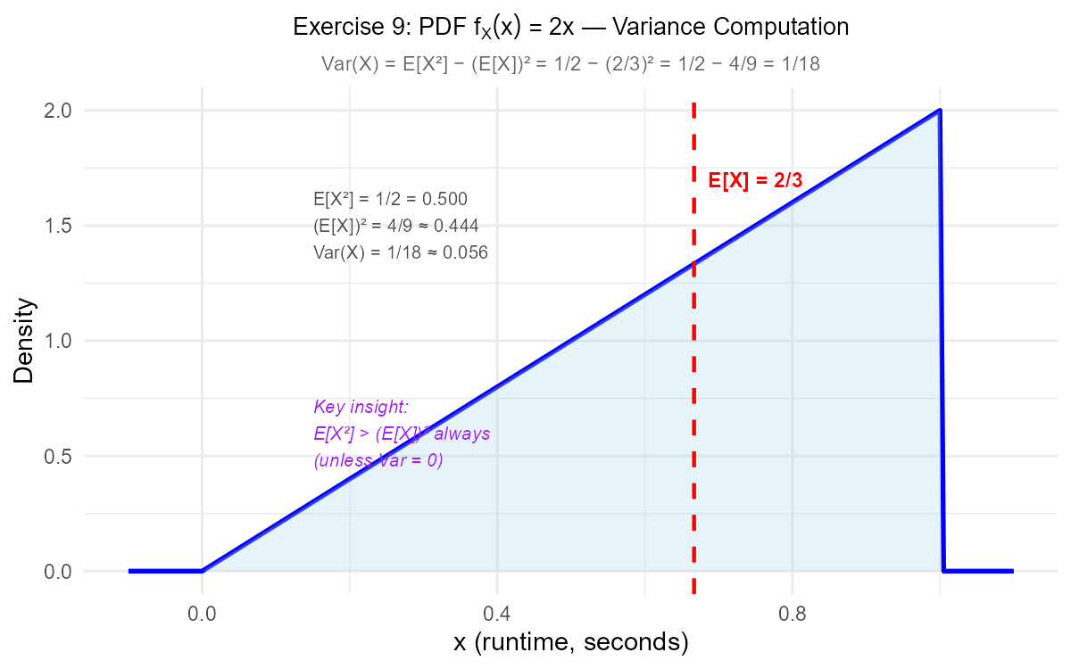 Fig. 6.14 The variance shortcut: \(\text{Var}(X) = E[X^2] - (E[X])^2\). Note that \(E[X^2] > (E[X])^2\) always (unless Var = 0).